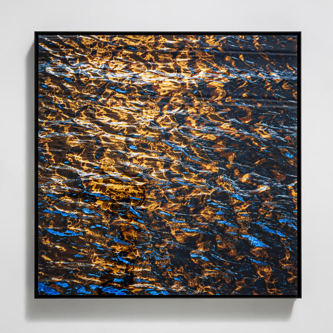 Quadratische Fotografie aus der renommierten Serie „Liquids“ von Ortwin Klipp, an der der Künstler kontinuierlich seit 1999 arbeitet. In dieser langfristig angelegten Werkreihe werden reine Wasseroberflächen teils in Nahaufnahme abgelichtet und verortet. Jeder Ort erscheint dabei höchst individuell mit seinem eigener eigenen Wasser- und Lichtqualität und birgt seinen eigenen Wiedererkennungswert. LIQUIDS 231 entstand in der historischen Speicherstadt in Hamburg und überzeugt durch seine klare Komposition, atmosphärische Tiefe sowie das subtile Zusammenspiel von Struktur und Reflexion. Die Fotografie ist hinter Glas gerahmt und in einer hochwertigen Studiorahmung präsentiert. Bildmaß: 40 × 40 cm. Ortwin Klipp (*1977) ist ein deutscher Grafikdesigner und Künstler. Nach seinem Studium in München arbeitete er als Assistent des Venedig-Biennale-Künstlers René Chacón und ist seit dem Jahr 2000 selbständig tätig. Seine Arbeiten wurden in zahlreichen nationalen und internationalen Medien veröffentlicht, darunter The New York Times, Wallpaper, Süddeutsche Zeitung, ELLE, GQ und AD, sowie im BMW Museum. Ausstellungen führten ihn in viele Städte im In- und Ausland, darunter Berlin, Hamburg, Rom, München, Frankfurt, Düsseldorf und Leipzig. Alle Werke von Ortwin Klipp erscheinen in streng limitierten Editionen. Jedes Motiv ist auf eine Auflage von sechs Exemplaren begrenzt und ist auf Wunsch auch in individuellen Maßen erhältlich.