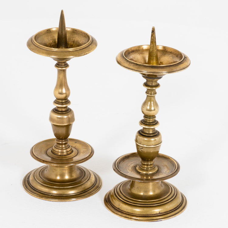 Two brass Candlesticks, probably German, 17th Century