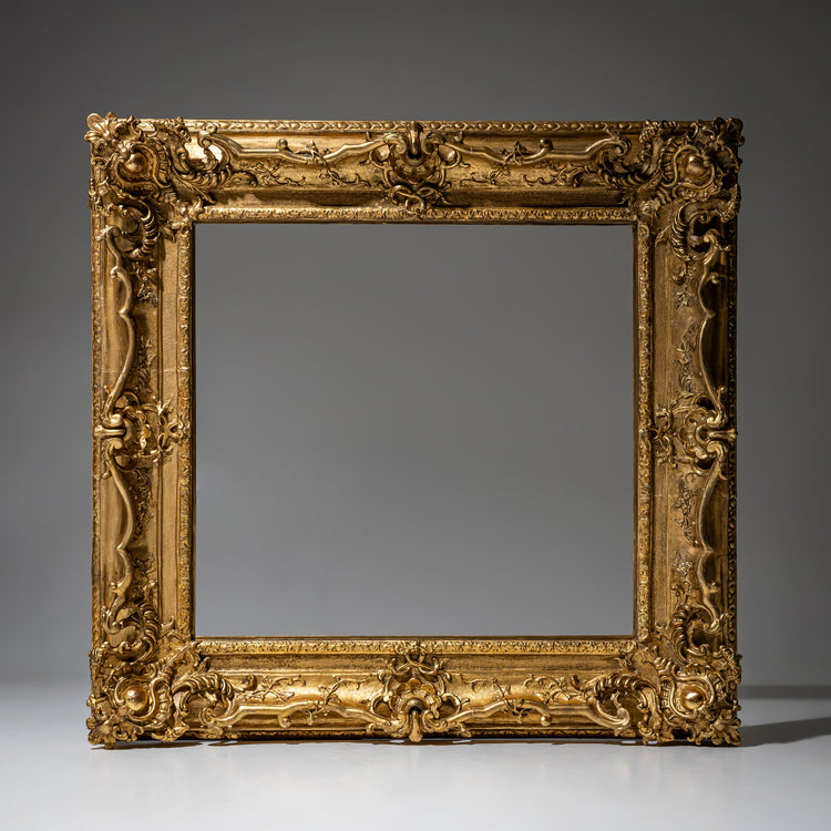 Rechteckiger vergoldeter Louis-XV-Stuckrahmen mit Muscheldekoren und feinen Blattranken. Sehr plastisch gearbeitet.