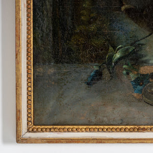 Rahmen aus dem frühen 19. Jahrhundert, weiß gefasst mit goldenem Rand und Perlstabdekor.